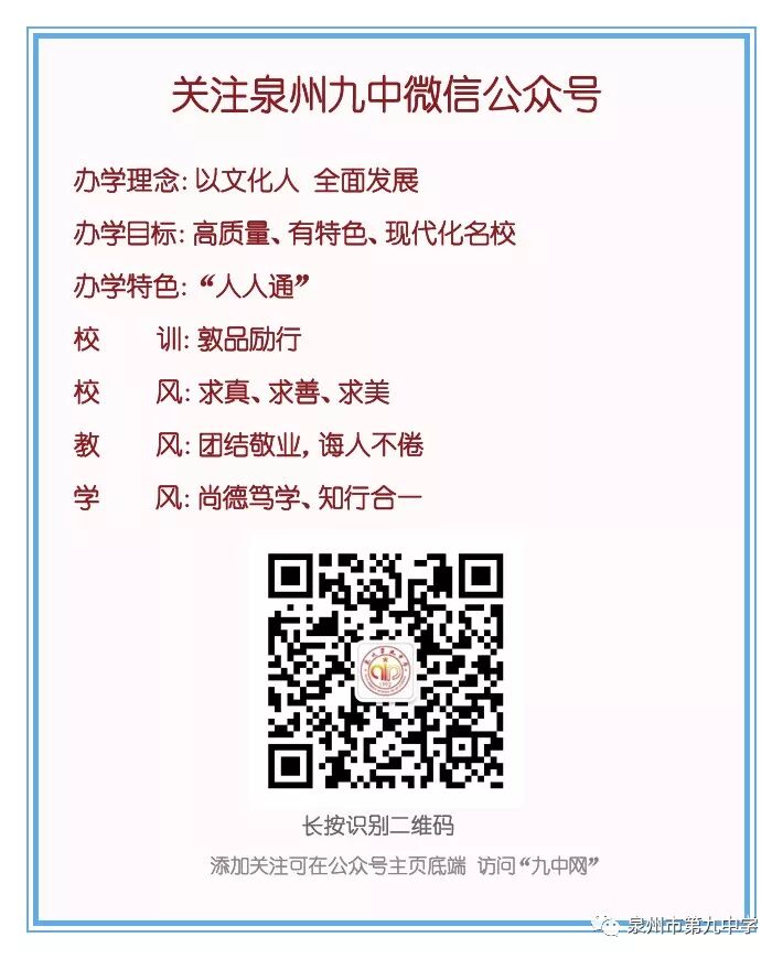 各位九中的家长朋友们,