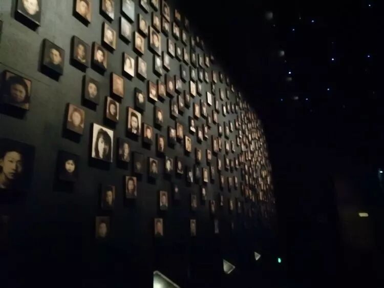 曾几何时,对南京大屠杀的了解,仅是来源于电视、电影和历史课本,那一段中华民族苦难屈辱的历史,象一把利剑深深刺痛我的心,30万亡灵的冤魂,魂牵梦绕在脑海里。两边的墙体上,密密麻麻刻满了一万个遇难者的名子,满墙的名字仅是30万亡灵中的一小部分,有太多太多殉难者面目全非,身份难识,尸骨与名字被埋没在尘土之中而无从考证。