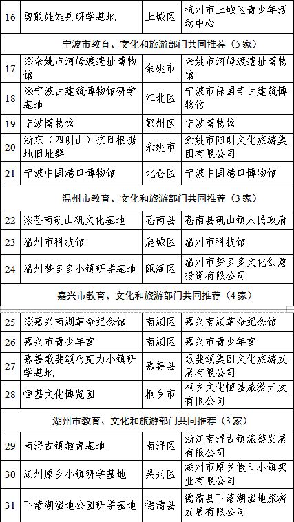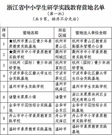 2.浙江省中小学生研学实践教育营地名单(第一批)