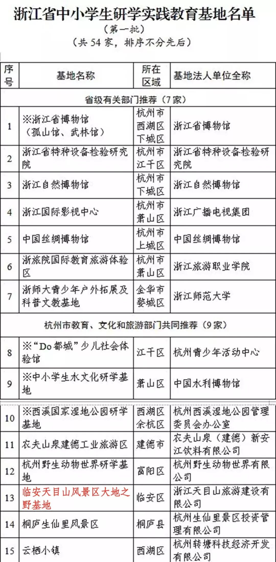 1.浙江省中小学生研学实践教育基地名单(第一批)