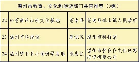 过完年,开学的日子也越来越近了,新的学期,你想过去哪里参加研学旅行吗?近日,浙江省中小学生研学实践教育基地营地(第一批)名单新鲜出炉啦!其中,温州有3家单位上榜浙江省中小学生研学实践教育基地名单,1家单位上榜浙江省中小学生研学实践教育营地名单。
