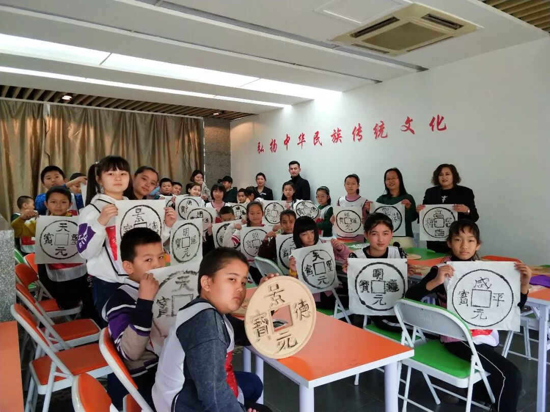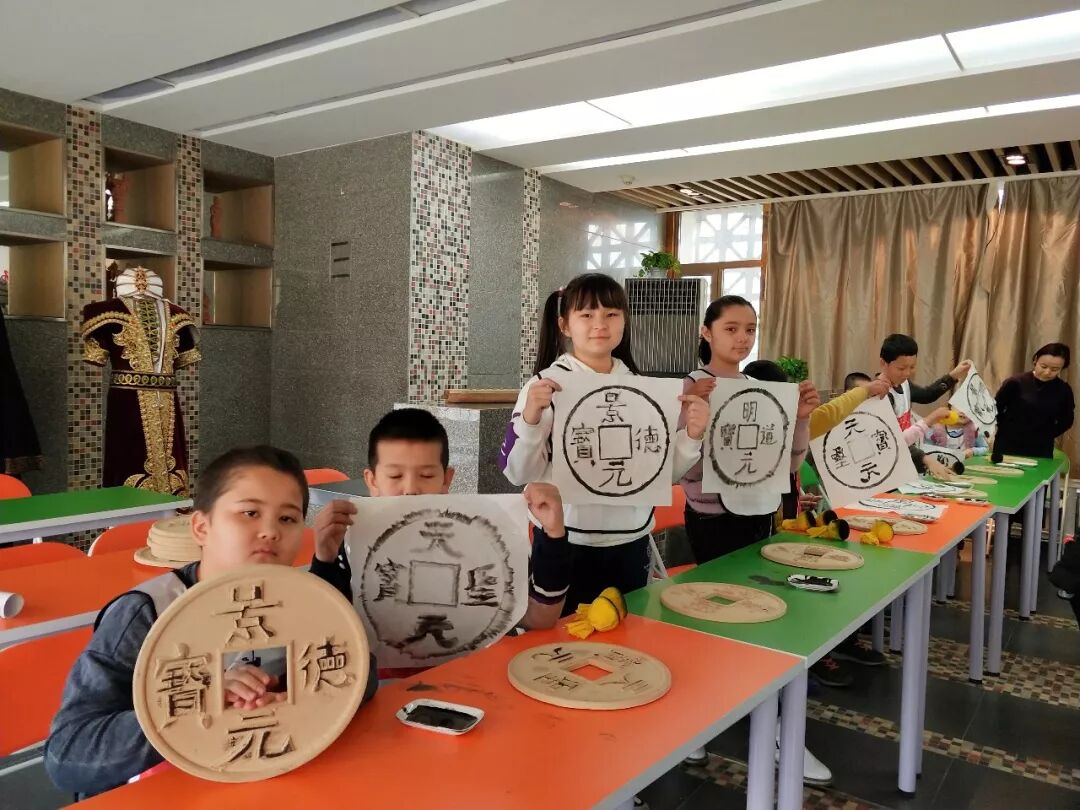 本次活动以吐鲁番古代流通的钱币为题材,让同学们亲身体验拓片技艺。活动中,首先由社教老师对拓片的制作方法、工艺进行讲解,让同学们充分了解和掌握制作方法;接着,进入拓片制作环节,在社教老师的指导下,同学们按照操作流程,分成小组合力“攻坚”,有的在刻板刷墨、有的铺宣纸、有的用刷子轻轻捶敲,个个都做得有模有样,经过大家共同努力,西州回鹘、开元通宝、高昌吉利……一幅幅黑白分明的拓片呈现在大家眼前。