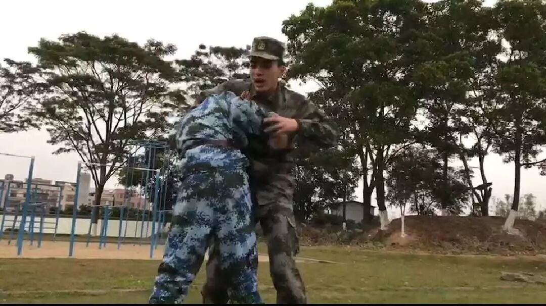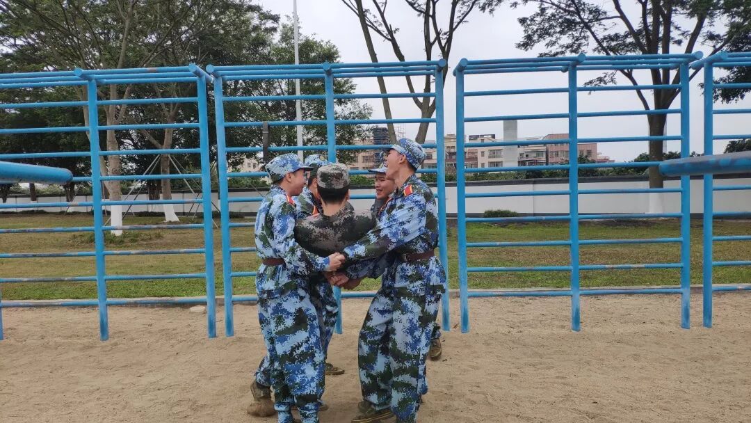 为了增进同学们的感情,加深同学们之间的信任,教官带领同学们玩起了信任背摔。