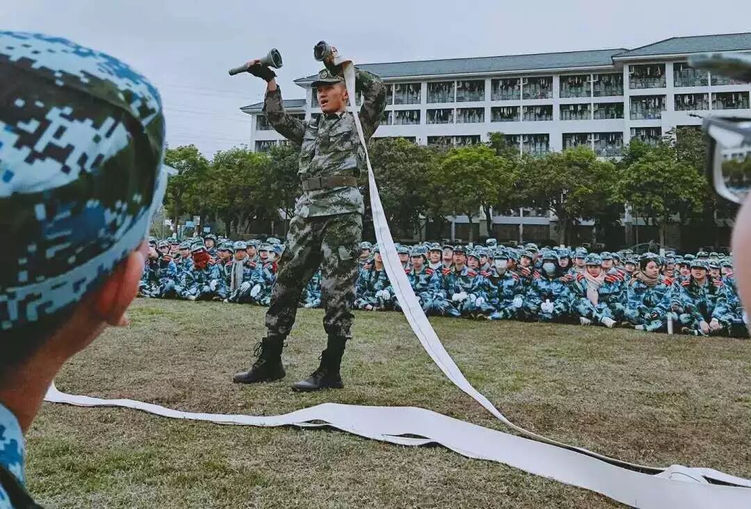 火灾会带来危害,了解防火知识可以减少火灾的发生。军训中,教官也借此机会,现场演习,给同学讲解了灭火的技巧和消防水带的使用方法。同学们也都跃跃欲试