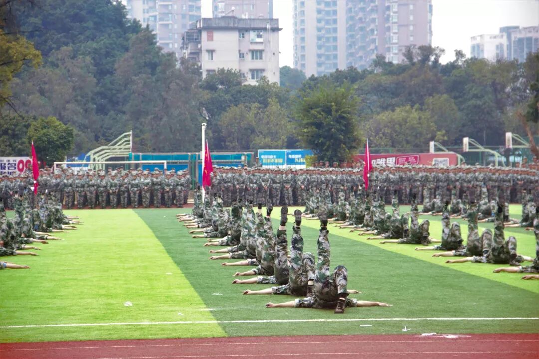 近来的天气也非常适合同学们进行严格的军训。尽管军训是艰苦的,但结果是甜蜜的。今天精彩的汇演便是训练多天的新生们交上的高分答卷。