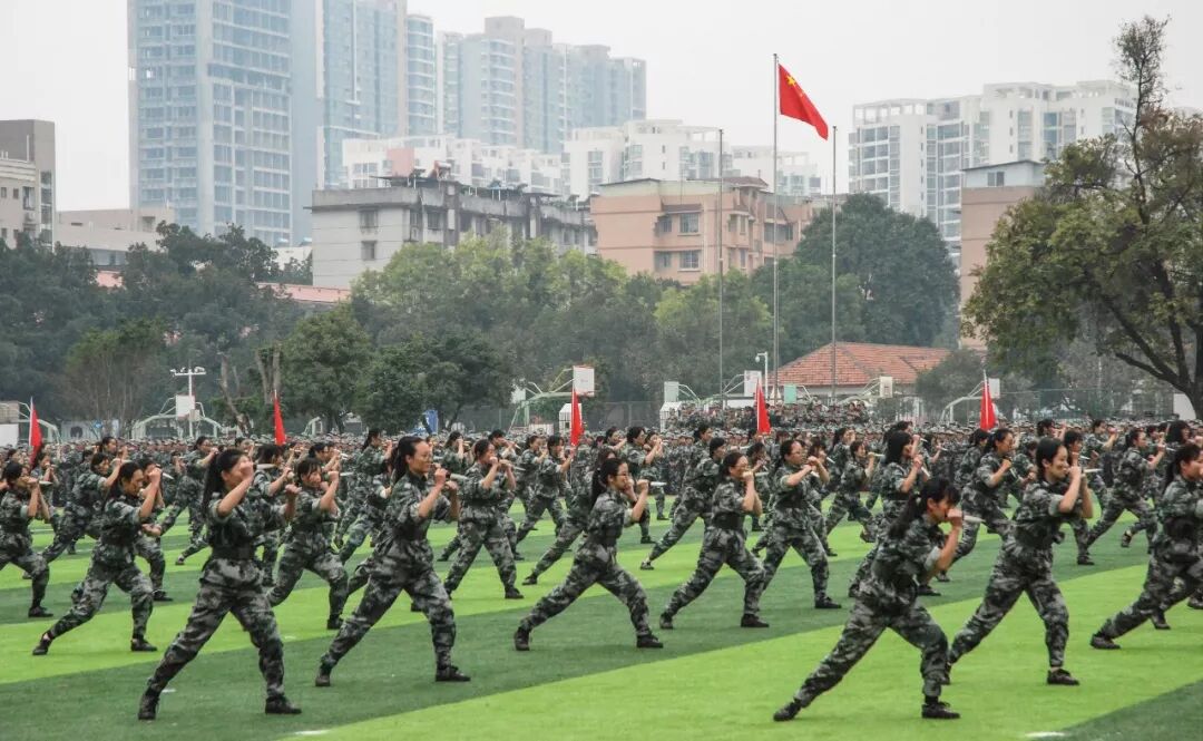 伴随着庄严的国歌,五星红旗冉冉升起,军训总结大会正式拉开序幕。