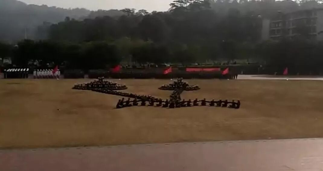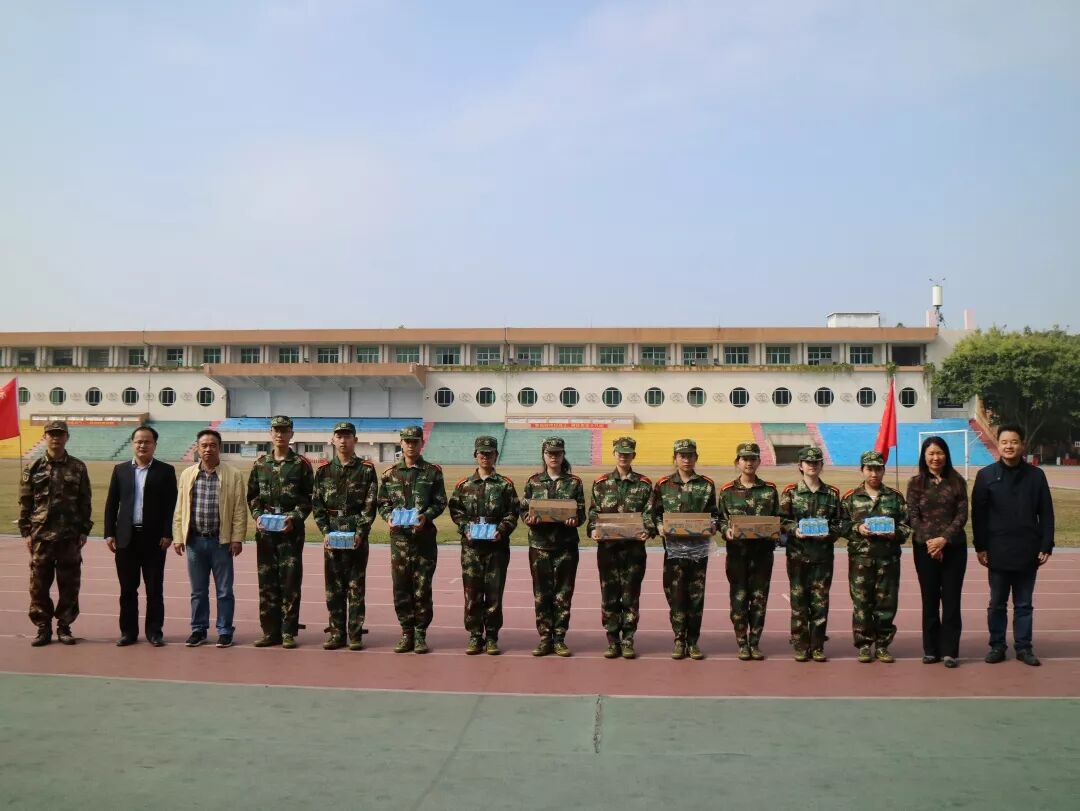 1月12日,体育馆内。营长和连长们从领导手中接过了军训旅的大旗。从此开始,在接下来的14天中,这面旗帜便一直屹立在操场上,见证了同学们14天军训生活的点点滴滴。