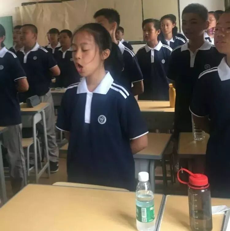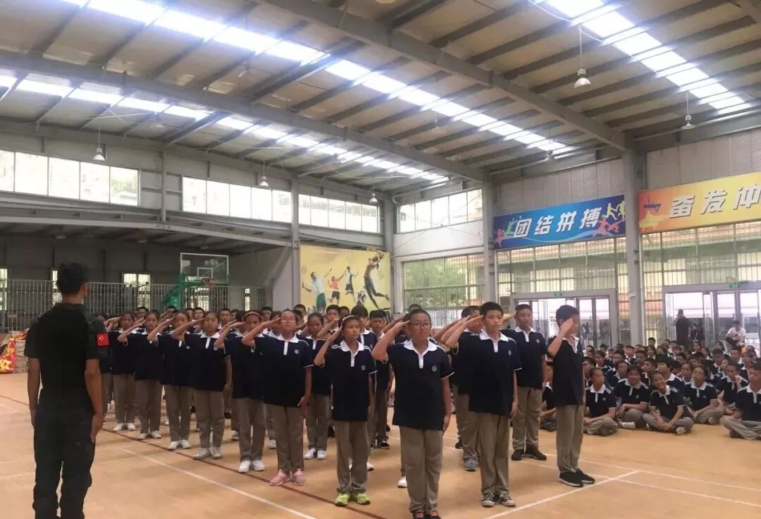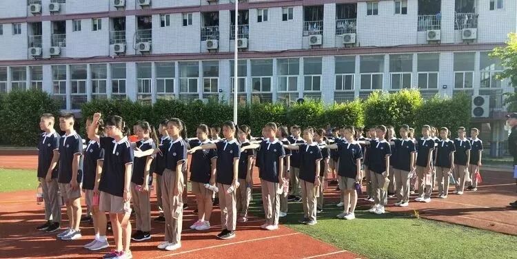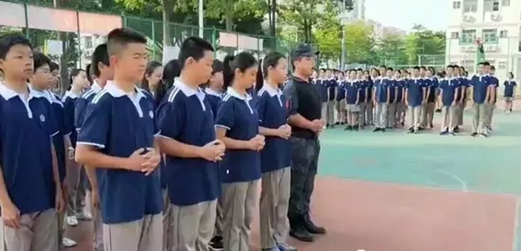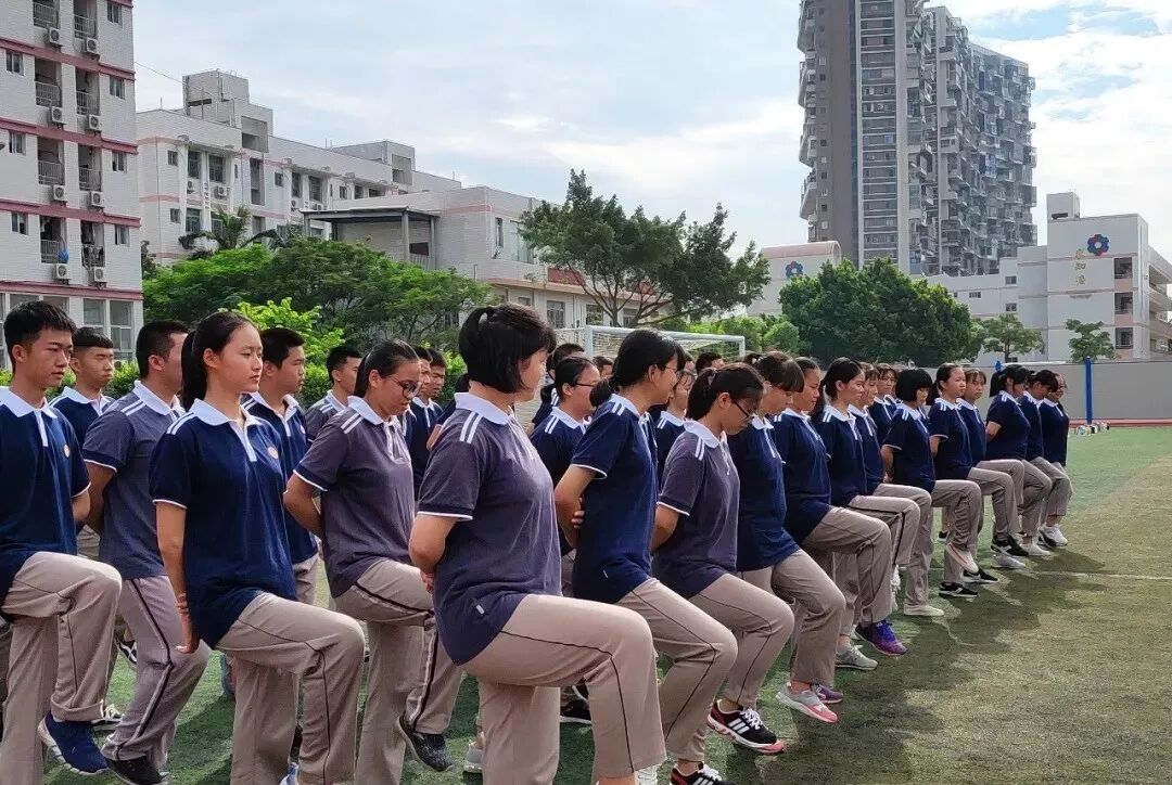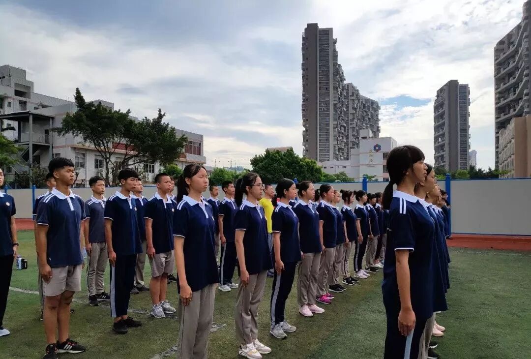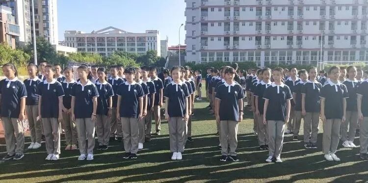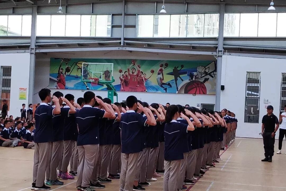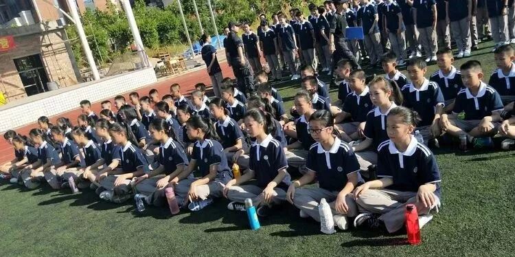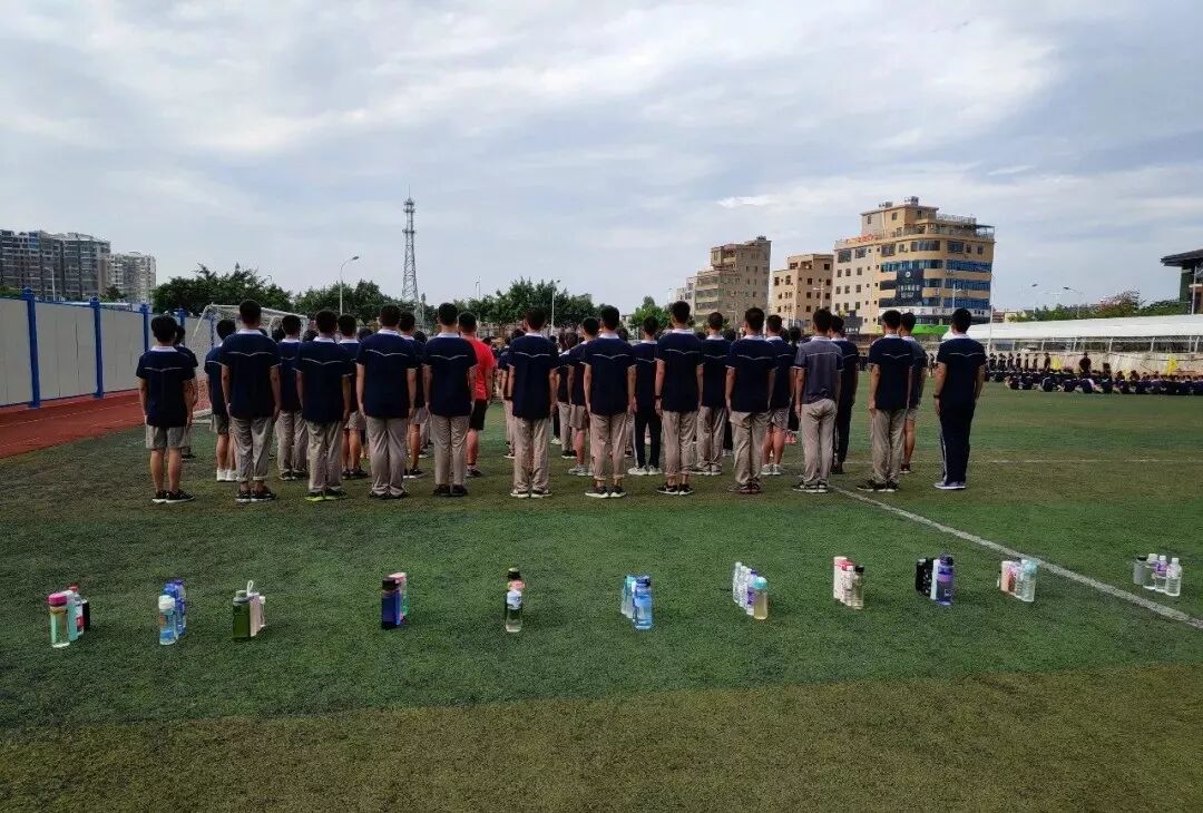 即使烈日炙烤着全身,即使汗水浸透了衣服,同学们都依然坚持着,展现出2018级初一新生顽强拼搏的飒爽英姿。
