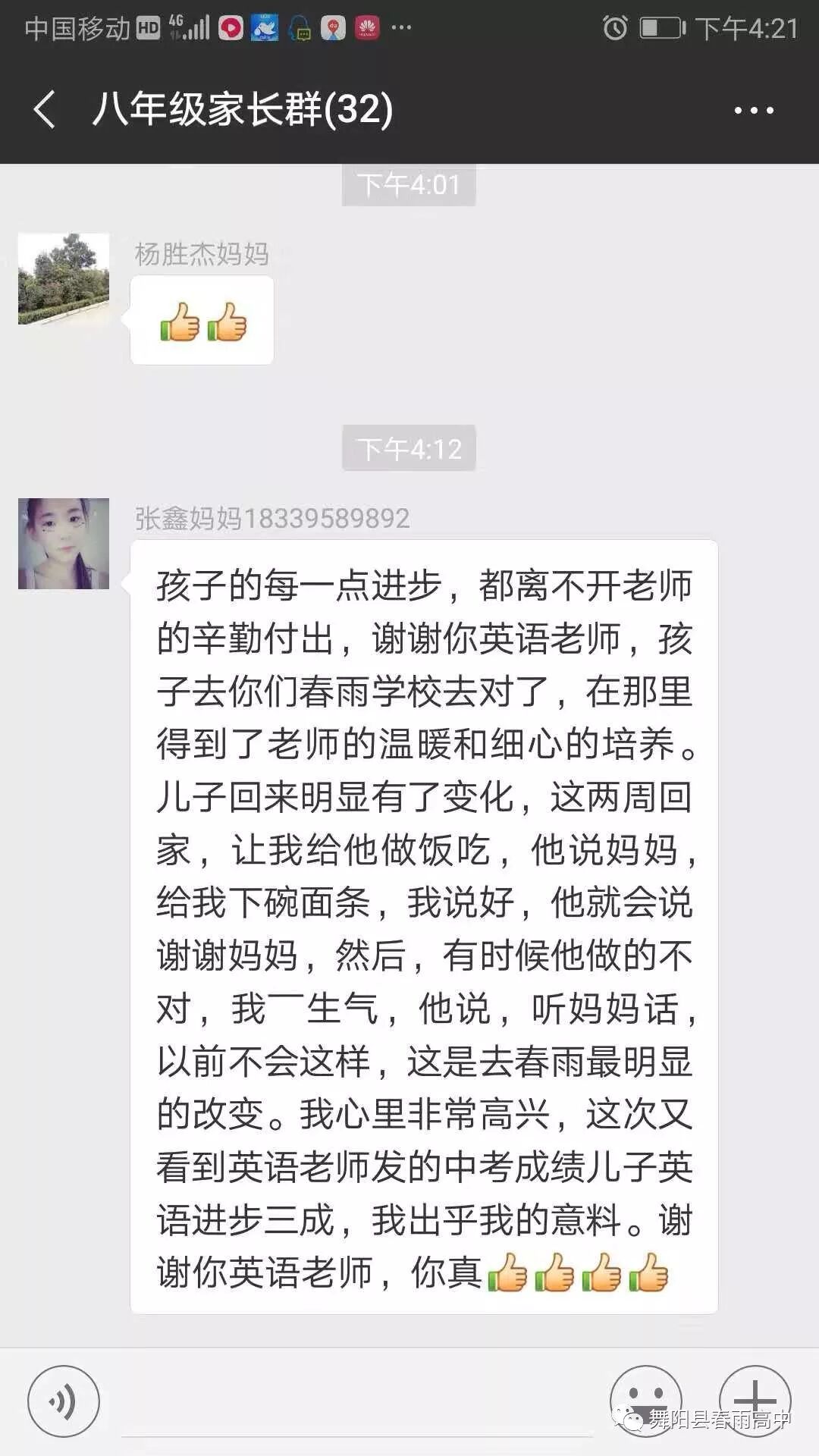 学生的未来,来自家长的反馈:
