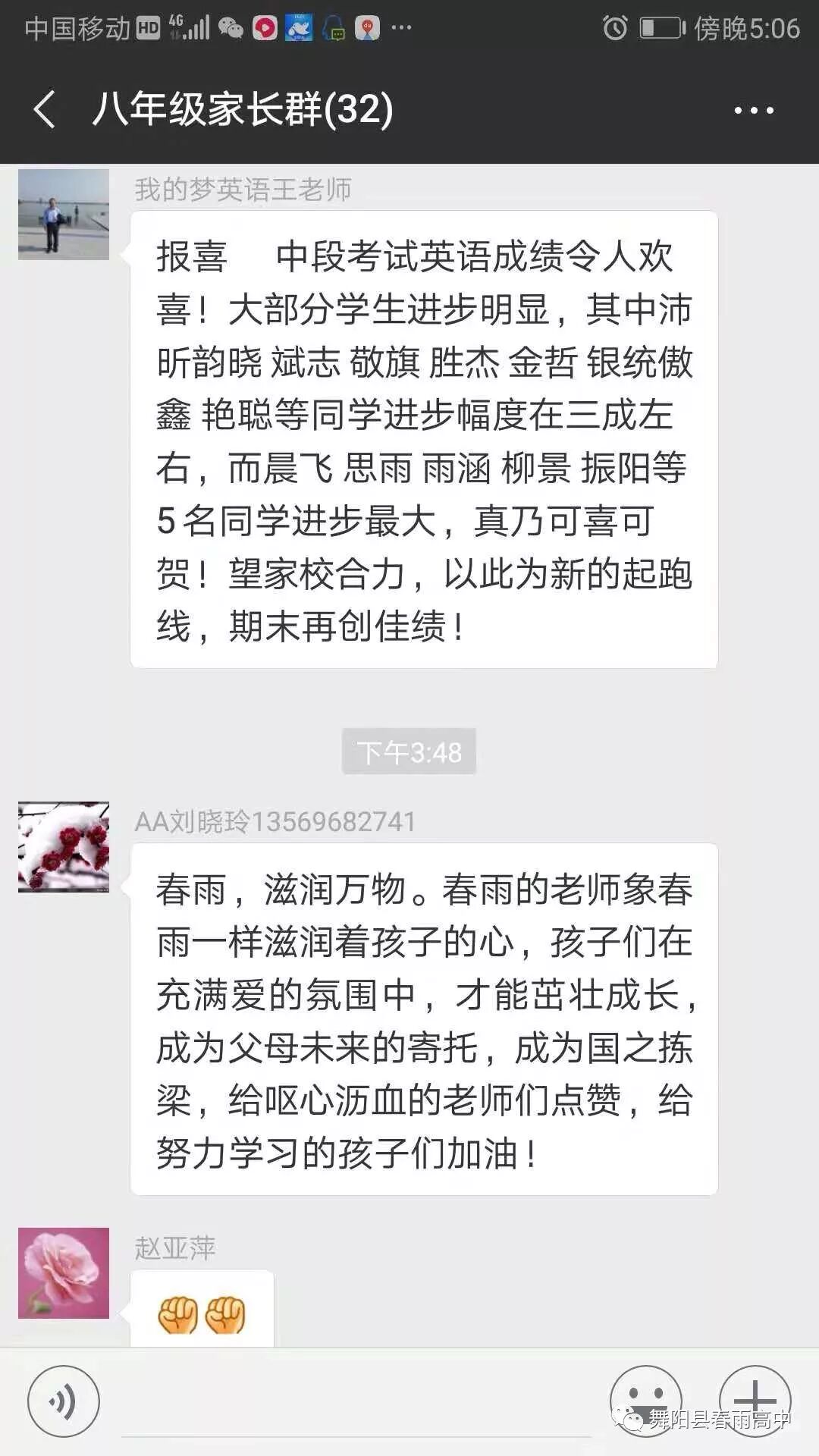 我爱春雨国文这个大家庭,是你给了我超越自我,奔赴梦想,实现人生宏伟蓝图的翅膀,是你把世界展现在我的眼前,让我进入知识的海洋,拥抱琴墨书香的雅韵,让爱与美好滋养我们从此与众不同的人生。